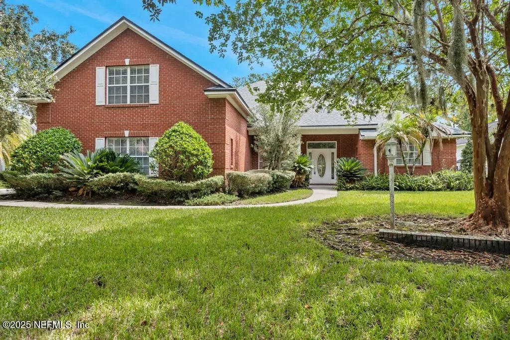 Palm Valley at its best! This four bedroom, three-and-a-half bath, brick home with water views and nice-sized yard is located in the heart of Palm Valley. This house has been recently updated with brand new white oak LVP, wall-to-wall carpet in the bedrooms, fresh paint, new tile in the bathrooms, fireplace, garden tub with separate shower in the master bathroom, and covered patio overlooking water views. Lawn service included. Surrounded by live oaks and Spanish moss, this beautiful oasis is the perfect place to call home.